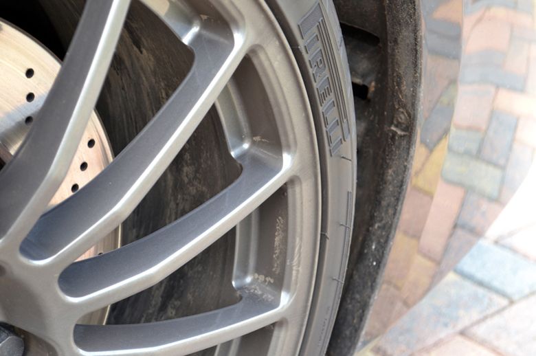 - Het lakwerk stond bol van de polijst,- en schuurfouten - De matte "Superleggera" striping was aangetast door krijt,- en silicone restanten van vorige poetsbeurten...
