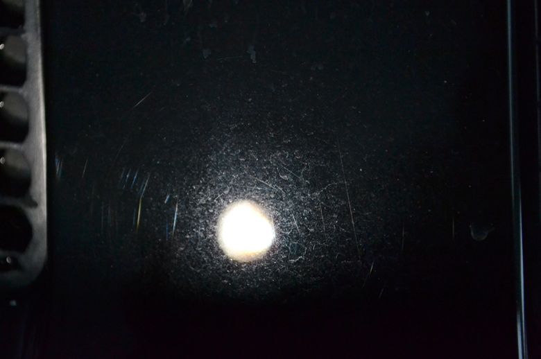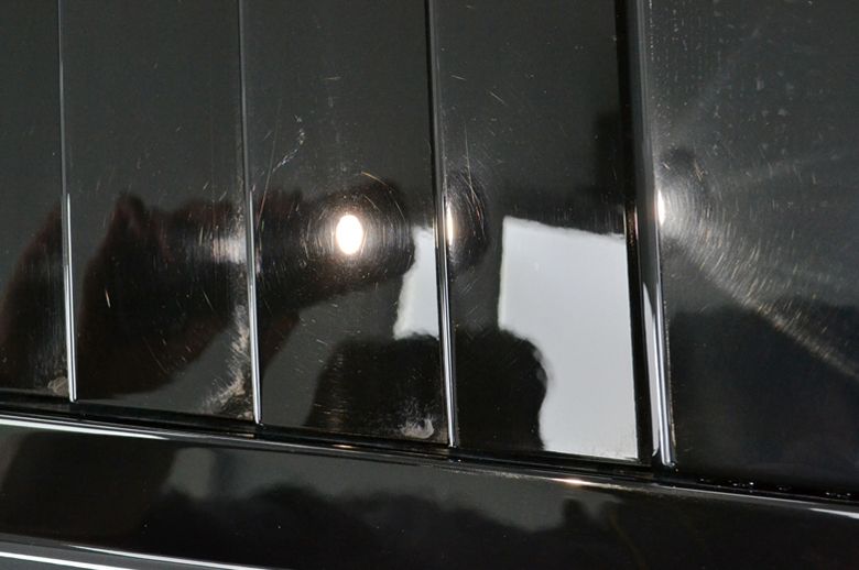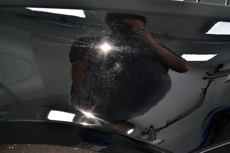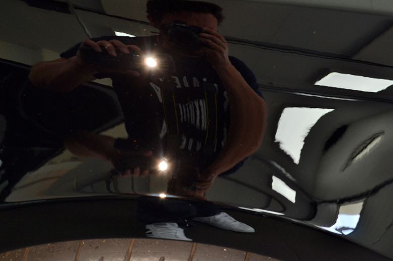 We kunnen wel zien dat de eigenaar de wagen niet enkel koestert door hem binnen te laten staan, maar er ook echt daadwerkelijk gebruik van maakt. Een verkeerde was,- en droog techniek i.c.m. eerdere herstelpogingen om de laklaag te polijsten hebben er echter juist voor gezorgd dat de oorspronkelijke flair compleet was verdwenen. We zagen een fletse zwarte lak vol met swirls, polijstbanen en hologrammen daar er geen rekening gehouden is met de andere opwarmingscurve van het plaatwerk.