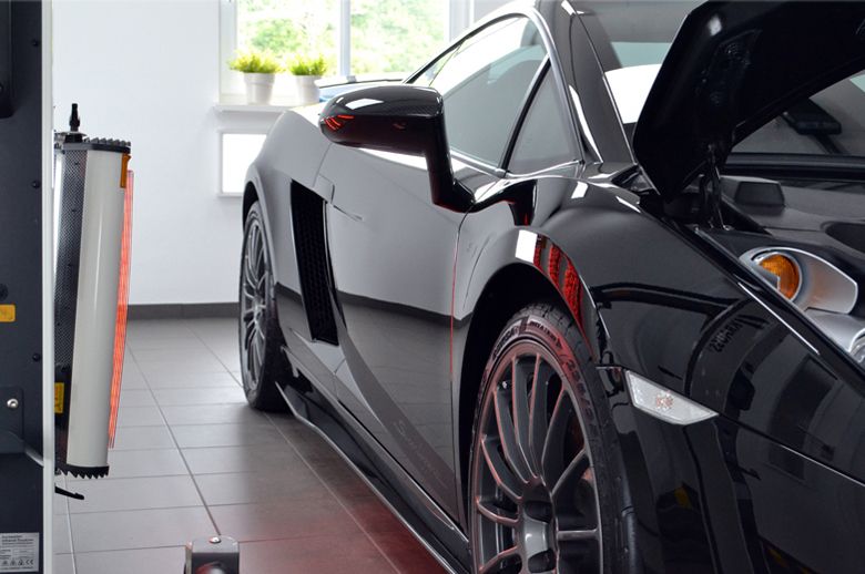 Nu de laklaag eenmaal weer is hersteld is het een kwestie van deze zo duurzaam mogelijk te conserveren. Dat kan met een traditionele wax of sealant, maar gezien de delicate kleur en gevoeligheid koos de eigenaar voor een semi-permanente glasscoating aan te brengen. Deze harde laag wordt op de bestaande vernislaag aangebracht en ingebakken met de infrarood droger. Deze laag oxideert ook niet waardoor die mooie diepe zwarte kleur gewaarborgd blijft en door de hardheid zullen nieuwe microkrasjes veel minder snel gevormd worden: